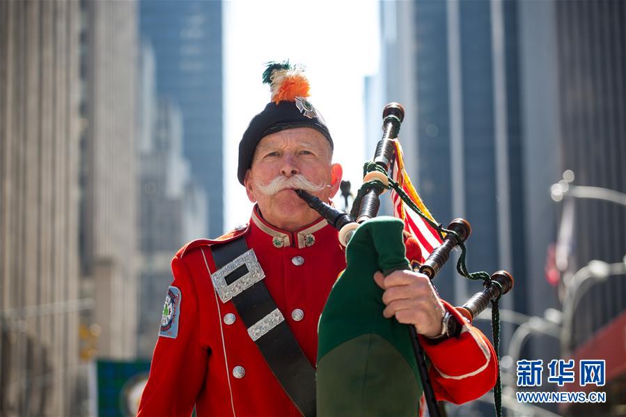 4月6日,一名风笛手在美国纽约曼哈顿参加“花格子呢日”游行。 当日,一年一度的“花格子呢日”游行在纽约举行。自1998年起,每年4月6日被定为全美“花格子呢日”,以此纪念苏格兰裔对美国作出的贡献。 新华社发(郭克摄)