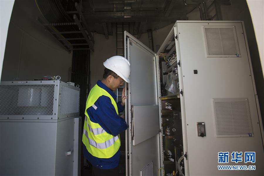 3月26日,在位于阿根廷丘布特省的罗马布兰卡风电项目现场,中国工程师在风机塔楼内调试设备。 新华社发(马丁·萨巴拉 摄)