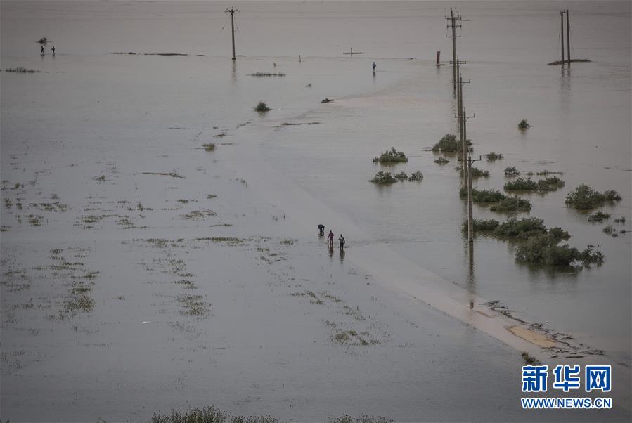 4月6日,在伊朗胡齐斯坦省,民众在受洪灾影响的路上行走。伊朗西南部持续强降雨迄今确认致死至少70人。 新华社发(艾哈迈德·哈拉比萨斯摄)