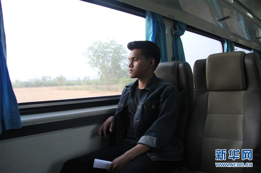 3月16日,在泰国素可泰府,泰国青年阿努帕·提帕拉坐火车去探望外公外婆。 新华社记者 杨舟 摄