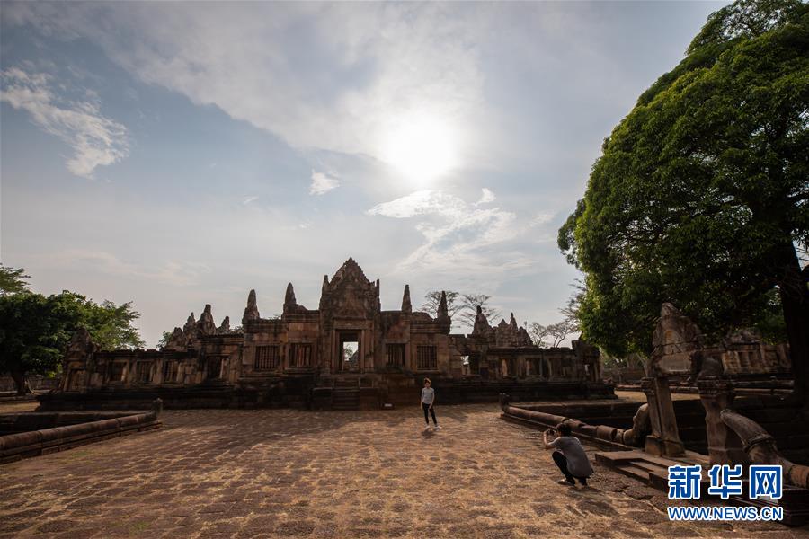 4月5日,游客参观泰国武里南府低城寺。 一年一度的“登帕侬隆山节”在泰国东北部毗邻柬埔寨的武里南府帕侬隆山举办。当地人以古装巡游展示独特的传统文化,希望能吸引更多外国游客、促进当地旅游业发展。 新华社记者 张可任 摄