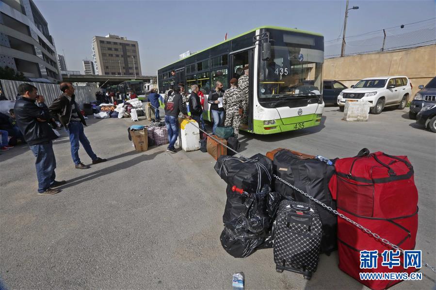 4月8日,在位于黎巴嫩首都贝鲁特的一处集合地点,叙利亚难民准备乘坐大巴返回叙利亚。 数百名叙利亚难民当天从黎巴嫩境内多个地方出发,经多个边境口岸返回叙利亚。 新华社发(比拉尔·贾维希摄)