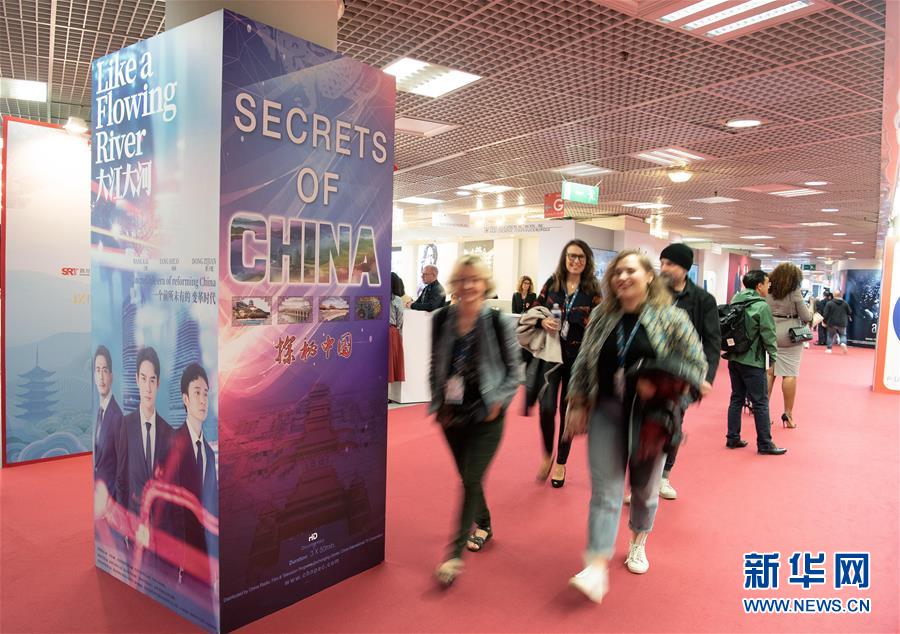 4月8日,在法国戛纳春季电视节上,人们走过一部中国电视剧的海报。 2019戛纳春季电视节近日在法国南部海滨小城戛纳举行。中国展团带来的多部电视剧、纪录片、动画片受到海外人士关注。 新华社发(杰克·陈摄)