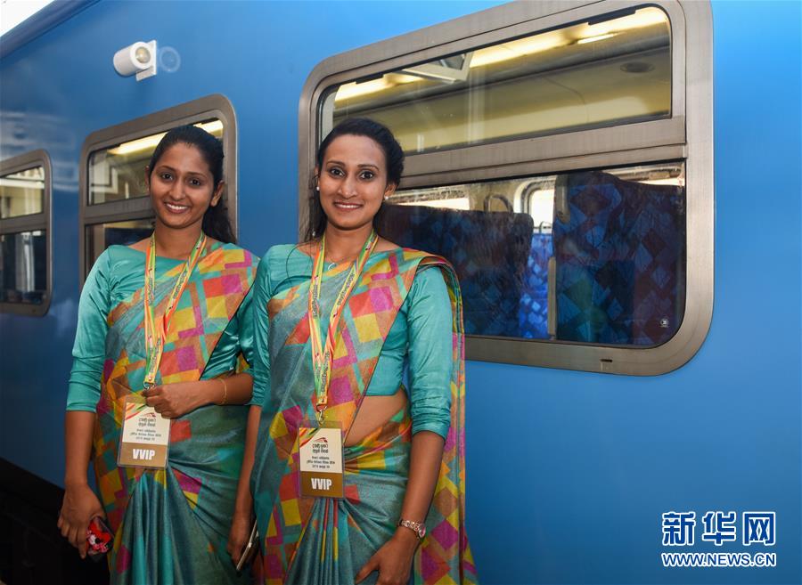 4月8日,在斯里兰卡南部马特勒车站,两名穿着民族服装的女子等待开往贝利亚塔的列车发车。 由中国企业承建的斯里兰卡南部铁路延长线一期项目8日正式通车,并在斯南部城市贝利亚塔举行了通车仪式。 新华社记者 郭磊 摄