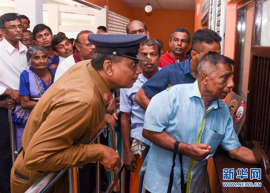4月8日,在斯里兰卡南部马特勒车站,人们排队购买当天刚刚开通的开往贝利亚塔的列车车票。 由中国企业承建的斯里兰卡南部铁路延长线一期项目8日正式通车,并在斯南部城市贝利亚塔举行了通车仪式。 新华社记者 郭磊 摄