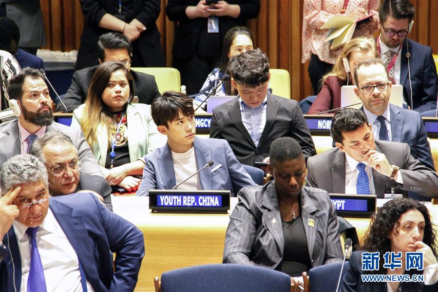 4月8日,在位于纽约的联合国总部,易烊千玺(中)出席联合国经济与社会理事会青年论坛。世界卫生组织中国健康特使、中国演唱组合TFBOYS成员易烊千玺8日在联合国经济与社会理事会青年论坛发言,分享他对促进青少年健康的看法。新华社记者 谢锷 摄