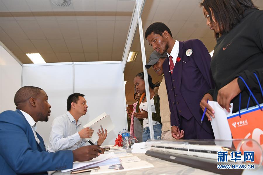 新华社照片,约翰内斯堡,2019年4月9日 (国际)(3)驻南非中资企业为当地学生举办招聘会 4月8日,在南非约翰内斯堡,学生在招聘会现场向企业投递简历。 驻南非中资企业招聘会8日在约翰内斯堡埃库尔胡莱尼西部学院博克斯堡校区举行。本次招聘会由南非高等教育部、南非中国经贸协会以及中国文化和国际教育交流中心共同主办。海信、中国联通、中国国航等约40家驻南非的中资公司参加招聘会并提供200多个就业岗位,吸引了赴华留学和培训归来的南非学子以及当地各大职业技术培训学院学生约1000人应聘。 新华社记者 陈诚 摄