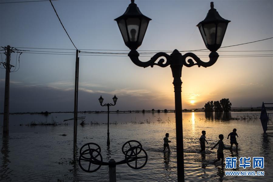 4月8日,在伊朗胡齐斯坦省的一处村庄,孩子们在被洪水淹没的街道上玩耍。自3月下旬起伊朗境内出现大范围持续降雨,造成严重洪涝灾害。除人员伤亡外,洪灾给伊朗农业生产造成严重损失,一些城市和乡村的民居和基础设施遭到严重破坏。 新华社发(艾哈迈德·哈拉比萨斯摄)