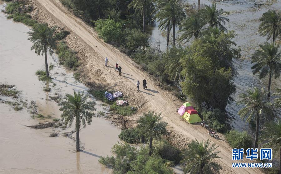 4月9日,在伊朗胡齐斯坦省的受灾地区,人们在河岸等待发放救援物资。 近期,伊朗境内出现大范围持续降雨,造成严重洪涝灾害。 新华社发(艾哈迈德·哈拉比萨斯摄)