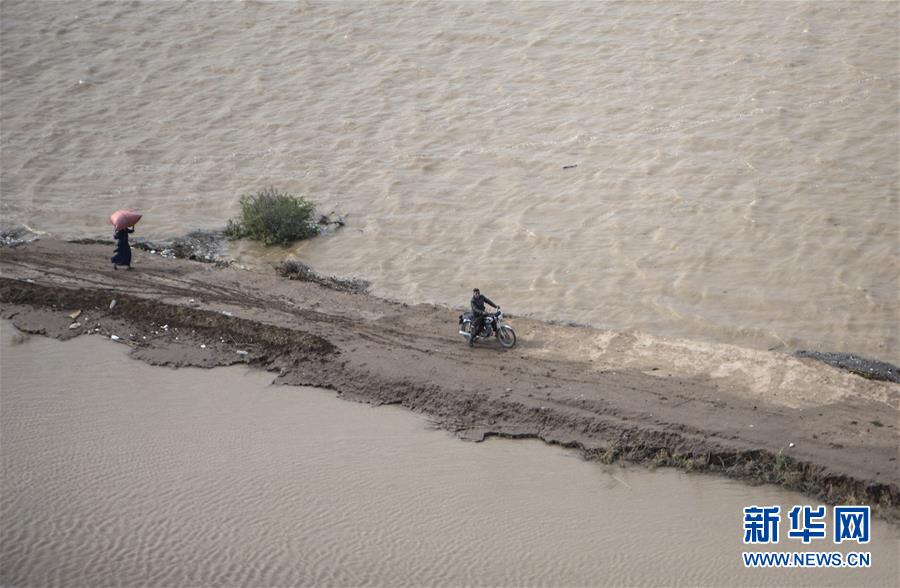4月9日,在伊朗胡齐斯坦省的受灾地区,人们在河岸等待发放救援物资。 近期,伊朗境内出现大范围持续降雨,造成严重洪涝灾害。 新华社发(艾哈迈德·哈拉比萨斯摄)