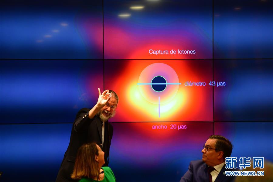 4月10日,在智利圣地亚哥,“事件视界望远镜”项目召开新闻发布会。 新华社发(豪尔赫·比列加斯摄)