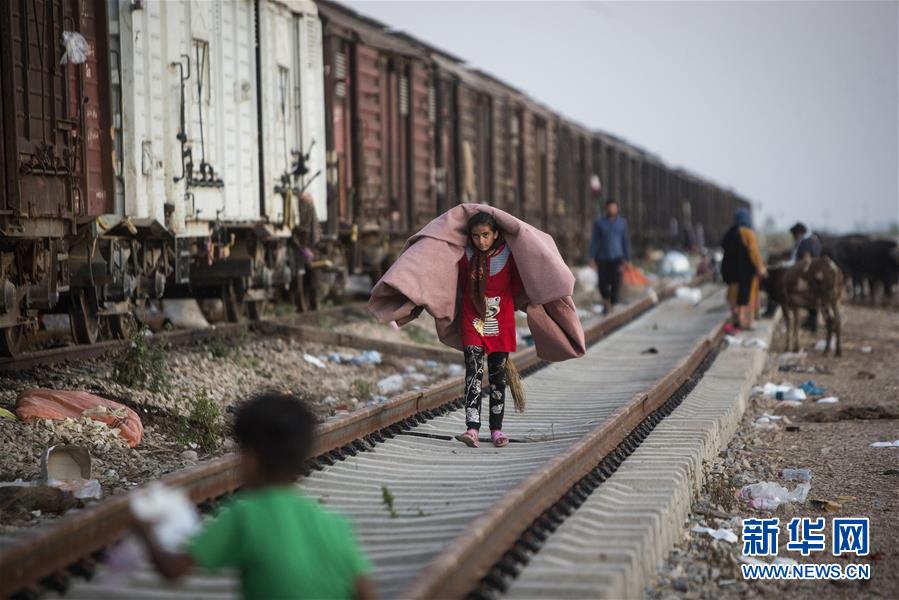 4月10日,在伊朗胡齐斯坦省巴姆代日,一名儿童在火车车厢外搬运毯子。近期,伊朗境内持续洪涝灾害,一些受灾居民被临时安置在火车车厢里。 新华社发(艾哈迈德·哈拉比萨斯摄)