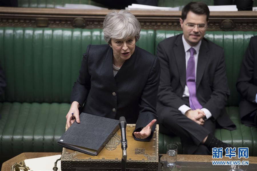 4月11日,在英国伦敦,英国首相特雷莎·梅(前)在议会下院陈述欧盟针对英国“脱欧”延期的相关决定。新华社发(英国议会摄影师杰西卡·泰勒摄)