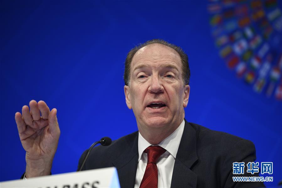4月11日,在美国华盛顿,戴维·马尔帕斯出席IMF和世界银行春季会议的开幕新闻发布会。新华社记者 刘杰 摄