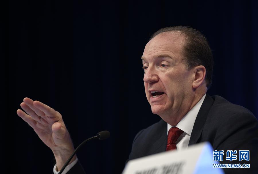 4月11日,在美国华盛顿,戴维·马尔帕斯出席IMF和世界银行春季会议的开幕新闻发布会。新华社记者 刘杰 摄