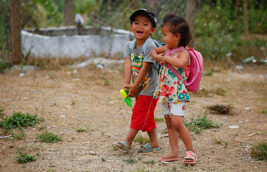 3月27日,在老挝琅勃拉邦省巴乌县,南欧江一级水电站附近惠楼新村的儿童放学后走在村里的街道上。新华社记者王婧嫱摄