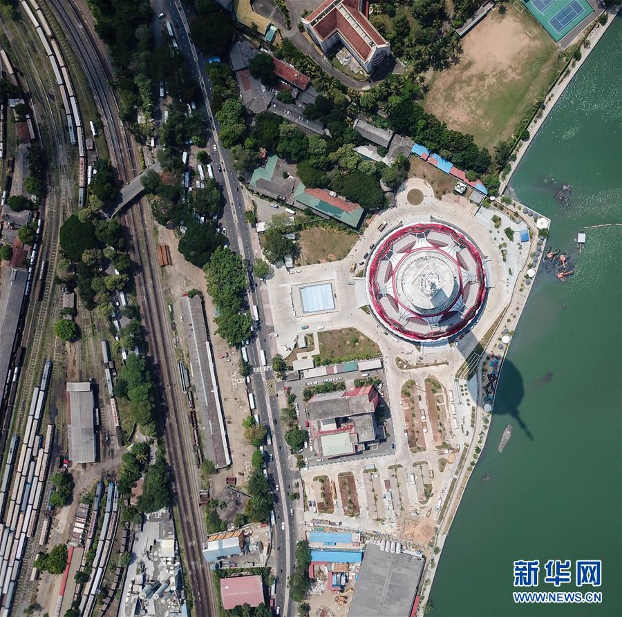 这是无人机航拍的斯里兰卡科伦坡莲花电视塔(4月4日摄)。
