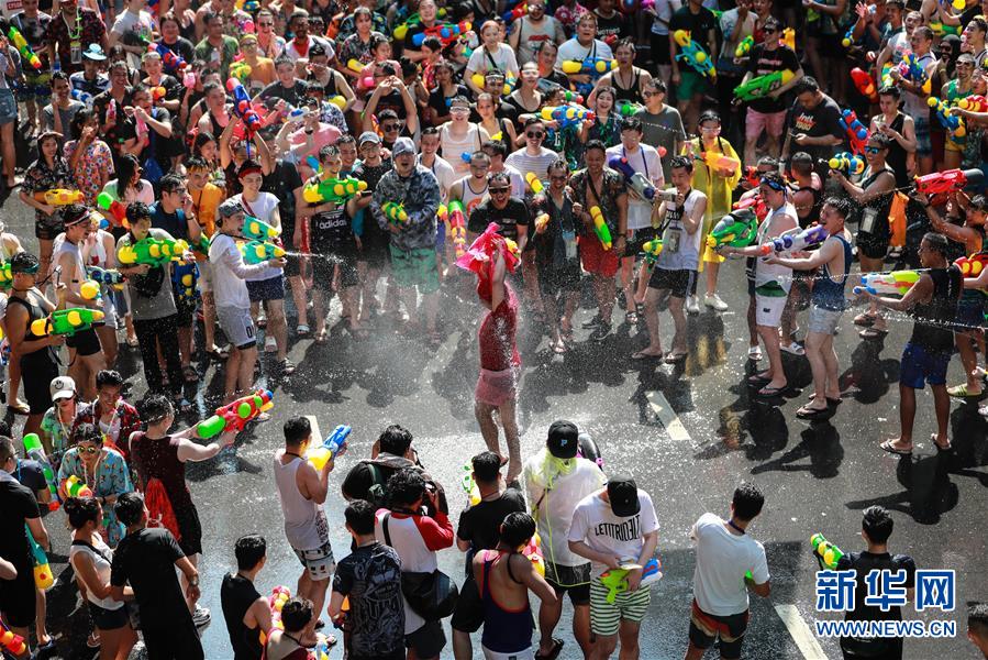 4月13日,在泰国曼谷,人们参加泼水狂欢活动庆祝宋干节。宋干节又称泼水节,是泰历传统新年。人们通过到寺庙祈福、用清水洗濯佛像、互相泼水祝福等方式庆祝这一传统节日。 新华社记者 张可任 摄
