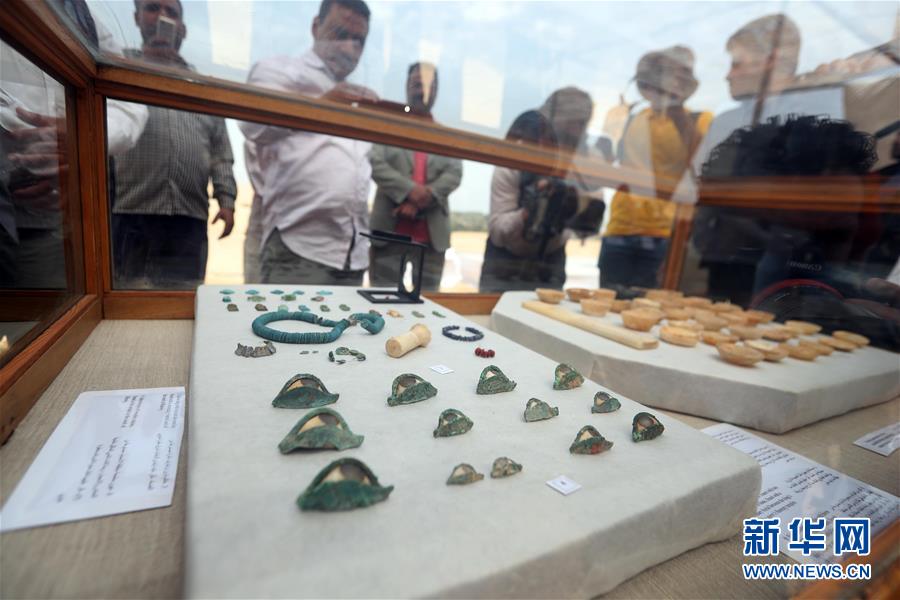 4月13日,在埃及首都开罗以南约30公里的塞加拉地区,人们参观贵族墓葬出土的文物。13日,埃及文物部组织媒体参观了近日在首都开罗以南约30公里的塞加拉地区发现的一座第五王朝时期的贵族墓葬。埃及文物部发布的声明说,该金字塔位于杰德卡雷金字塔旁,是迄今为止发现的古王国时期最大的王后金字塔。 新华社发(艾哈迈德·戈马摄)
