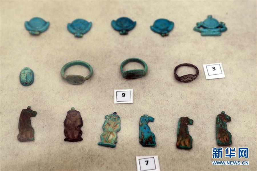 这是4月13日在埃及首都开罗以南约30公里的塞加拉地区拍摄的出土文物。13日,埃及文物部组织媒体参观了近日在首都开罗以南约30公里的塞加拉地区发现的一座第五王朝时期的贵族墓葬。埃及文物部发布的声明说,该金字塔位于杰德卡雷金字塔旁,是迄今为止发现的古王国时期最大的王后金字塔。 新华社发(艾哈迈德·戈马摄)