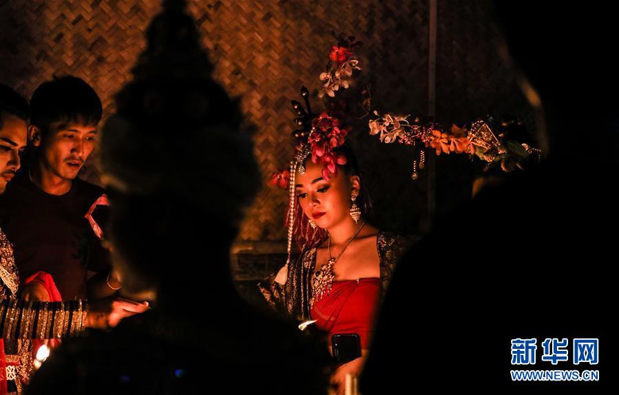 4月13日,在泰国叻武里府的堪农寺,演员点燃烛台准备登台表演。在泰国,皮影被称为“牛皮之艺”。与中国的皮影制作工艺不同,泰国皮影戏中人物和图案绝大多数为整张牛皮镂空制作,内容主要以民间传说和宫廷故事为主。泰国叻武里府的堪农寺国家博物馆是该国最大的皮影艺术博物馆。除了收藏皮影,堪农寺还拥有自己的皮影剧团并坚持表演。 新华社记者 张可任 摄