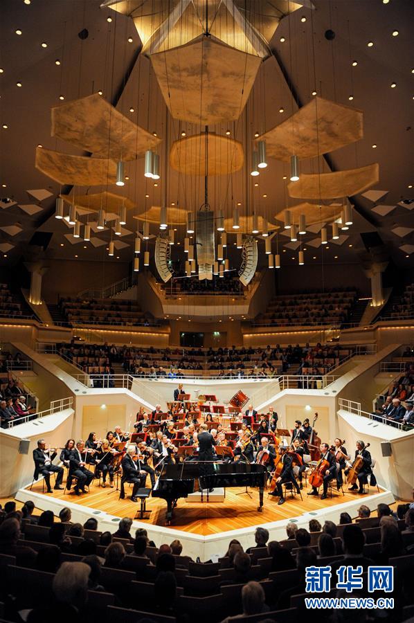 这是4月13日在德国柏林拍摄的“明日之星”演奏会现场。 德国柏林交响乐团一年一度的“明日之星”演奏会13日晚在柏林爱乐音乐厅举行,现年18岁的华裔青年朱熙萌闪耀亮相,以高质量完成帕格尼尼小提琴协奏曲。 新华社记者 连振 摄