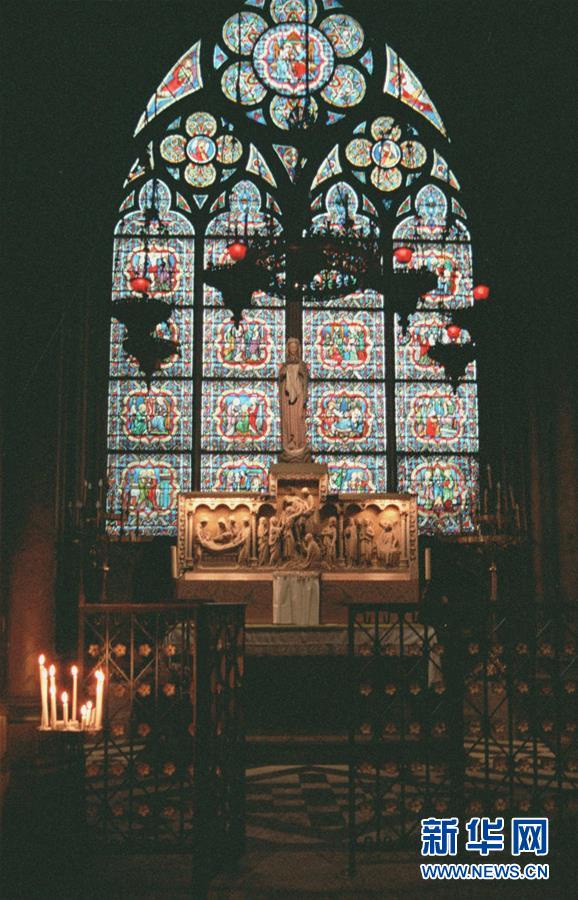 这是2000年拍摄的取材于《旧约全书》的巴黎圣母院彩色玻璃画。 新华社记者徐佑珠摄