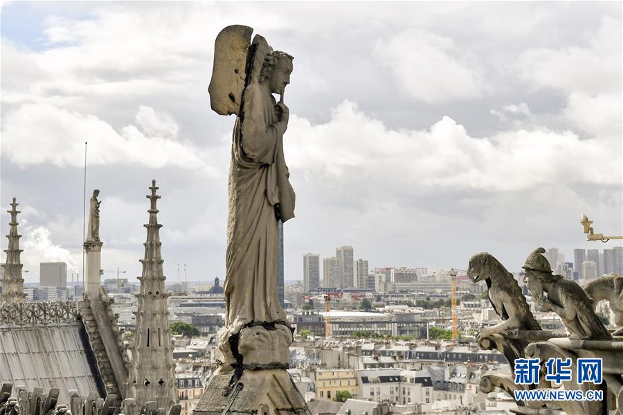这是2017年6月30日在法国巴黎拍摄的巴黎圣母院顶部雕塑。 新华社记者陈益宸摄