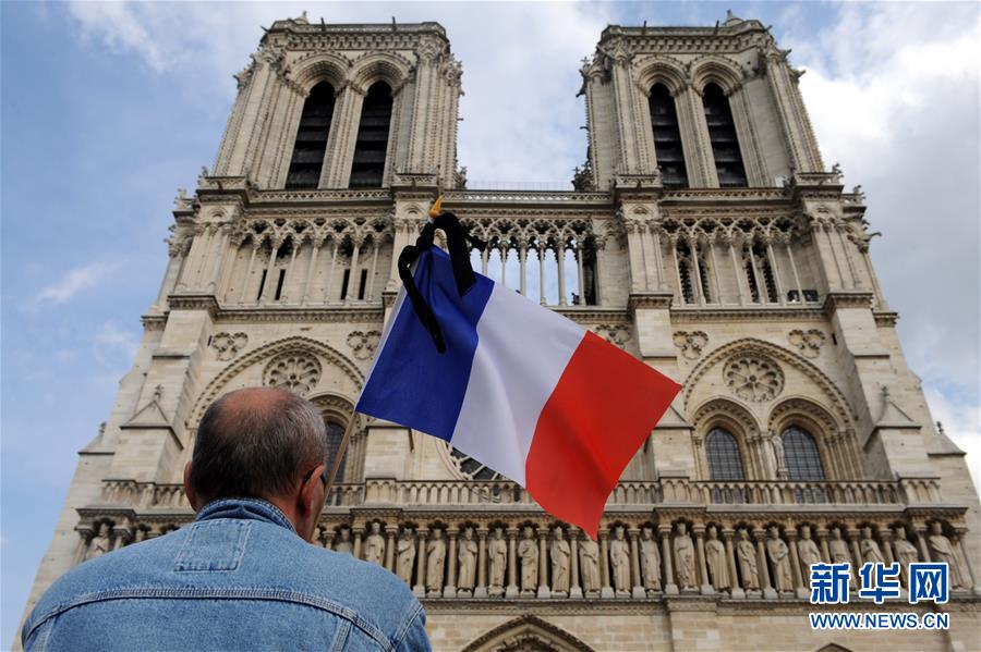 这是2009年6月3日,一名男子手持国旗在法国巴黎圣母院前参加追思仪式。法国当天在巴黎圣母院为法航失事客机和遇难者举行追思仪式。 新华社记者张玉薇摄