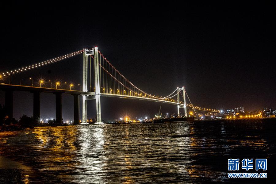 这是4月9日在莫桑比克拍摄的马普托大桥夜景。