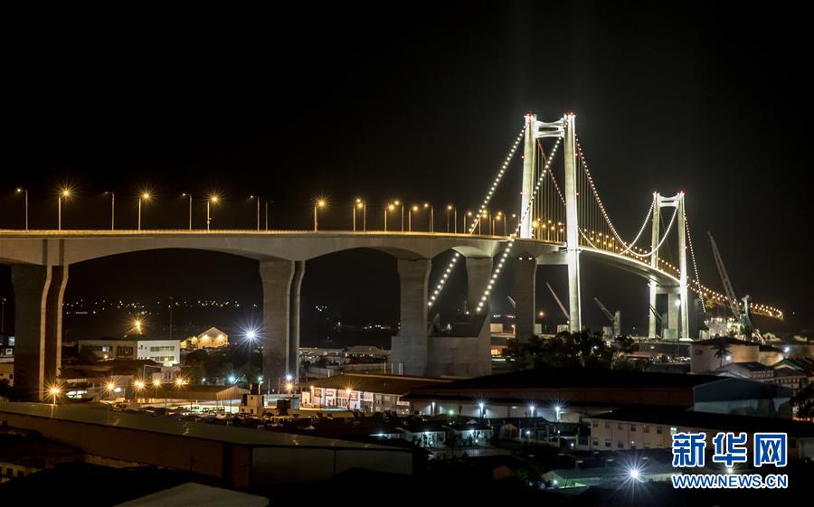 这是4月9日在莫桑比克拍摄的马普托大桥夜景。