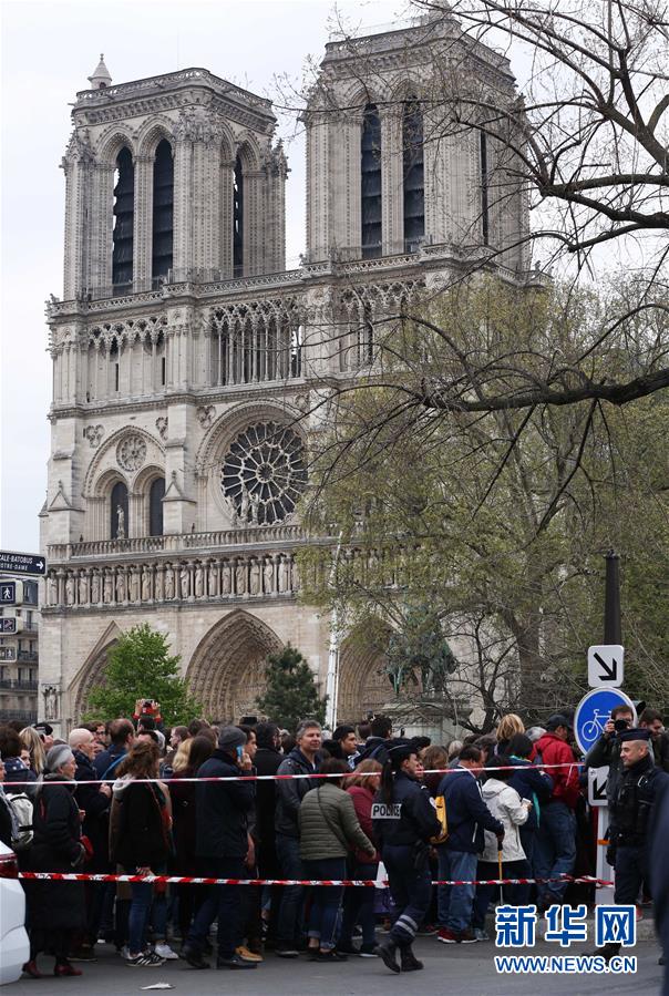 4月16日,在法国巴黎,人们聚集在“受伤”的巴黎圣母院附近。