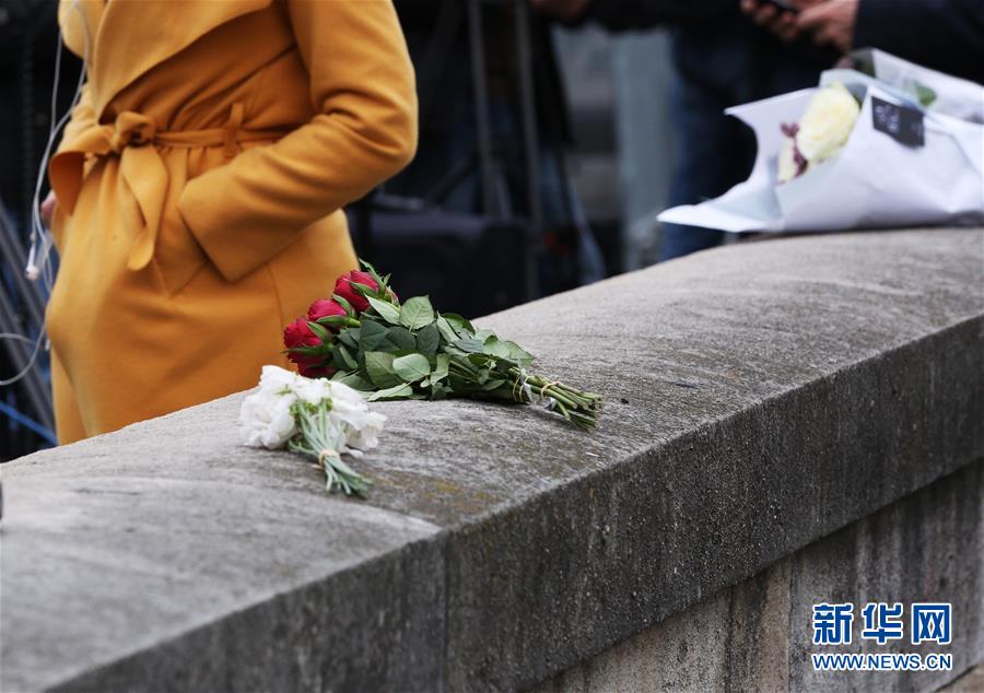 4月16日,在法国巴黎,人们带着鲜花前来看望“受伤”的巴黎圣母院。新华社记者 高静 摄
