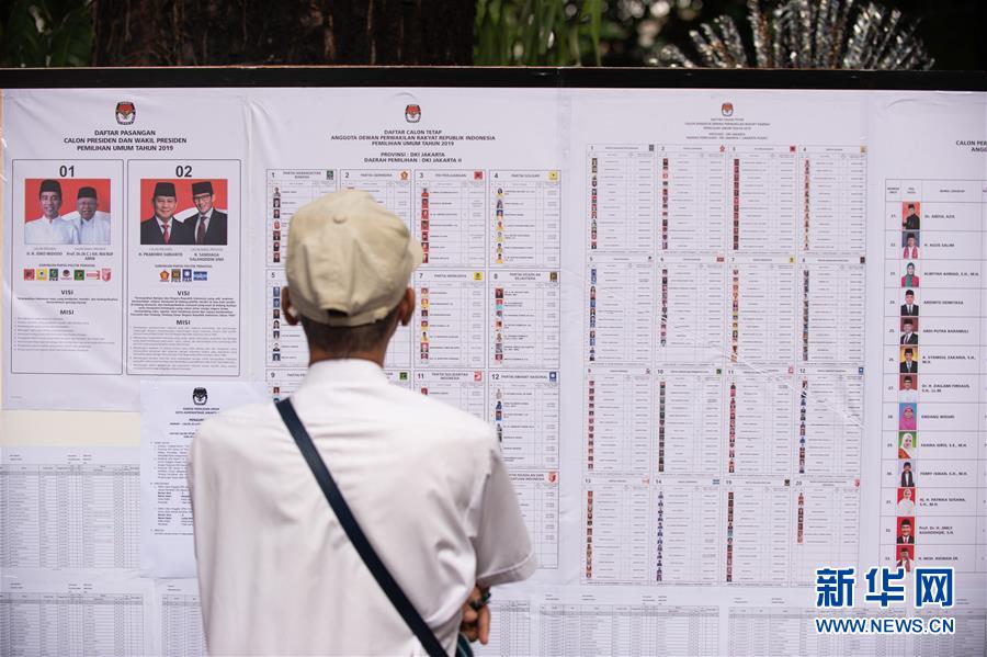 4月17日,一名选民在印度尼西亚雅加达一处投票站查看候选人信息。 印尼17日举行总统选举投票,印尼1.9亿注册选民将前往全国80多万个投票站投票,选出新一届总统和副总统。 新华社记者杜宇摄