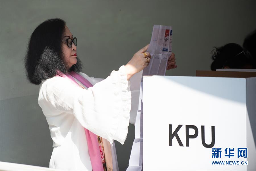 4月17日,一名选民在印度尼西亚雅加达一处投票站投票。 印尼17日举行总统选举投票,印尼1.9亿注册选民将前往全国80多万个投票站投票,选出新一届总统和副总统。 新华社记者杜宇摄