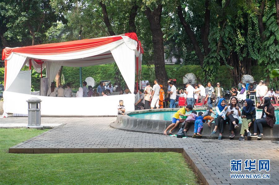 这是4月17日拍摄的印尼雅加达一处投票站外的场景。