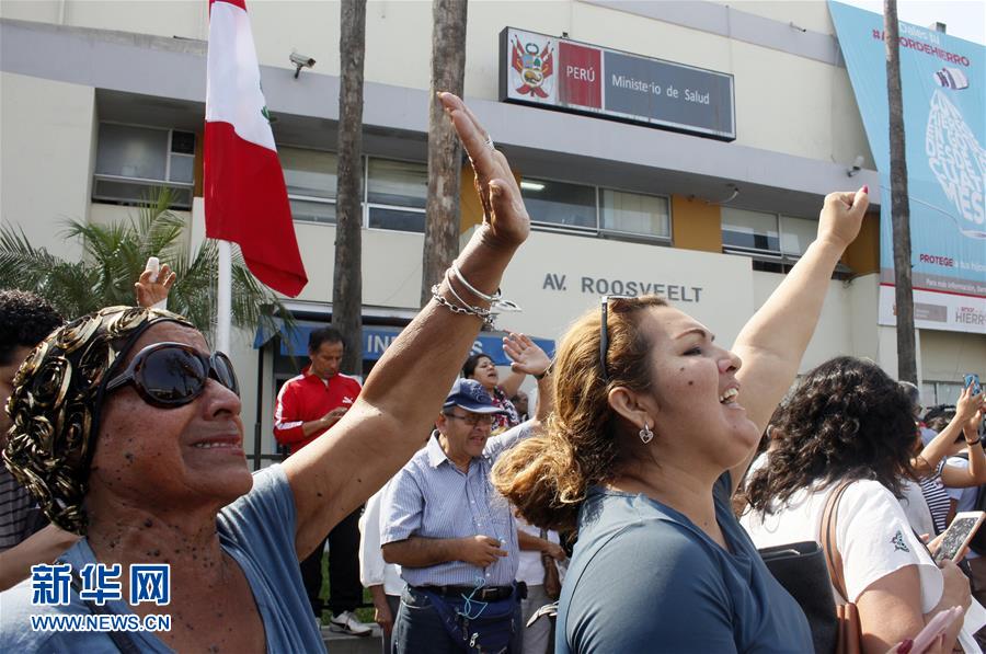 4月17日,在秘鲁利马米拉弗洛雷斯,秘鲁前总统阿兰·加西亚的支持者聚集在他接受救治的医院附近。涉嫌贪腐的秘鲁前总统阿兰·加西亚17日晨在得知秘鲁司法当局要对其执行拘捕时自杀身亡。 新华社发(路易斯·卡马乔摄)