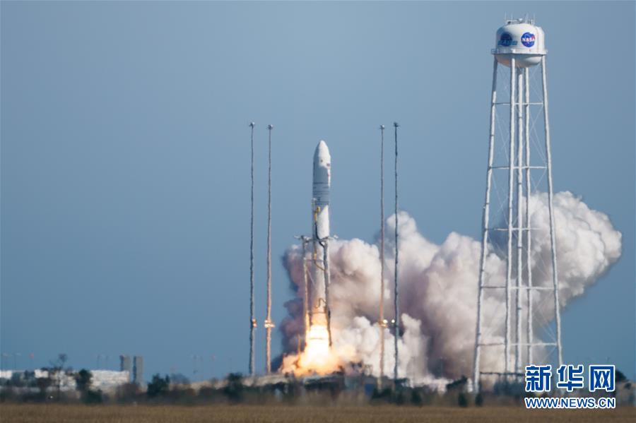 4月17日,“安塔瑞斯”火箭搭载“天鹅座”飞船从美国东海岸弗吉尼亚州的瓦勒普斯航天发射场起飞。 美国诺思罗普-格鲁曼公司17日利用“安塔瑞斯”火箭发射“天鹅座”飞船,第11次执行国际空间站货运任务,送去约3.4吨物资。 新华社发(沈霆 摄)