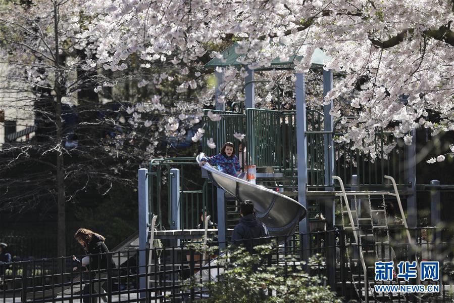 4月16日,孩子们在美国纽约中央公园的一处游乐场玩耍。 新华社记者 王迎 摄