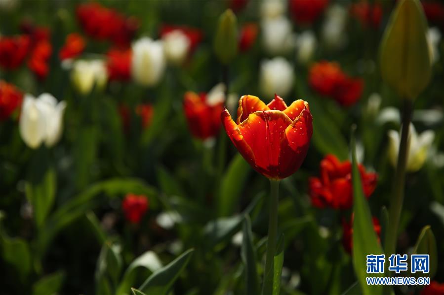 这是4月15日在比利时布鲁塞尔西郊的拜加登城堡拍摄的郁金香。 新华社记者郑焕松摄