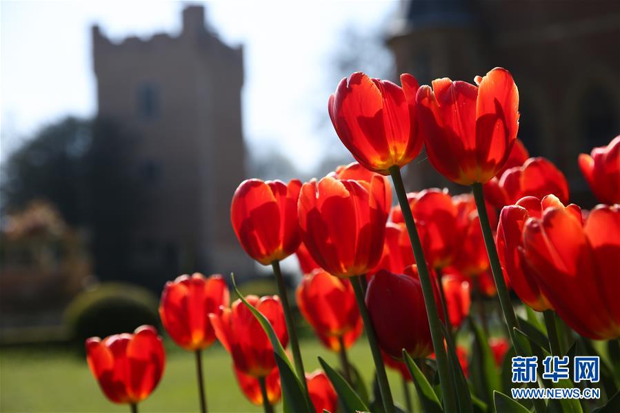 这是4月15日在比利时布鲁塞尔西郊的拜加登城堡拍摄的郁金香。 新华社记者郑焕松摄