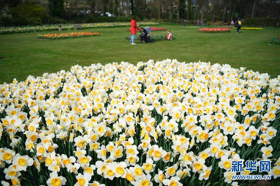 这是4月6日在比利时布鲁塞尔西郊的拜加登城堡拍摄的水仙花。 新华社记者张铖摄
