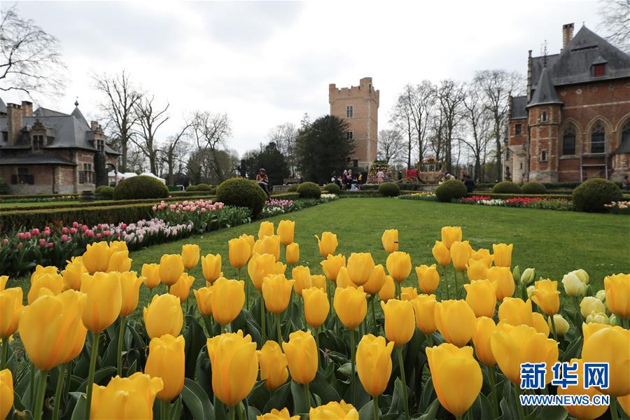这是4月6日在比利时布鲁塞尔西郊的拜加登城堡拍摄的郁金香。 新华社记者张铖摄