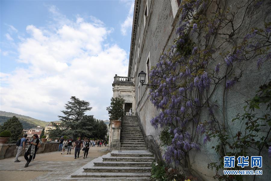 4月17日,在意大利蒂沃利,人们在埃斯特庄园中游览。埃斯特庄园位于意大利蒂沃利,面积约4.5公顷,是文艺复兴时期的文化艺术成果之一。埃斯特庄园是典型的意大利台地园,主建筑物在高地边缘,后面的园林建在陡峭的山坡上。2001年,埃斯特庄园被列入世界文化遗产。2019年中国北京世界园艺博览会(简称北京世园会)将于4月至10月举行。本届世园会将有约110个国家和国际组织、120多个非官方参展方参展,将刷新世园会参展方历史纪录。新华社记者 程婷婷 摄