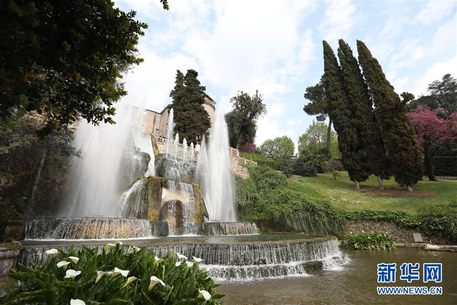 这是4月17日在意大利蒂沃利的埃斯特庄园中拍摄的一处喷泉。埃斯特庄园位于意大利蒂沃利,面积约4.5公顷,是文艺复兴时期的文化艺术成果之一。埃斯特庄园是典型的意大利台地园,主建筑物在高地边缘,后面的园林建在陡峭的山坡上。2001年,埃斯特庄园被列入世界文化遗产。2019年中国北京世界园艺博览会(简称北京世园会)将于4月至10月举行。本届世园会将有约110个国家和国际组织、120多个非官方参展方参展,将刷新世园会参展方历史纪录。新华社记者 程婷婷 摄