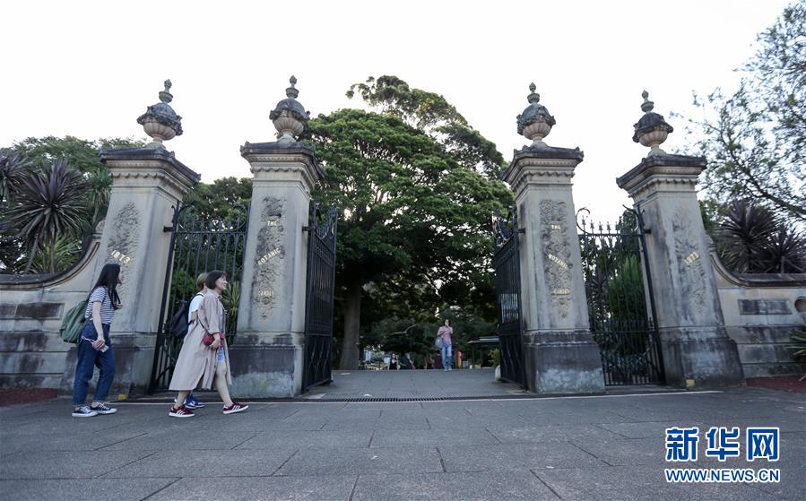 4月19日,游客走近澳大利亚悉尼皇家植物园入口。新华社记者白雪飞摄