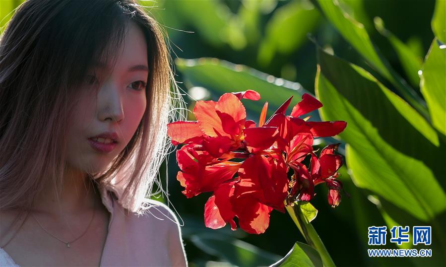 4月19日,一位游客在澳大利亚悉尼皇家植物园留影。 新华社记者白雪飞摄