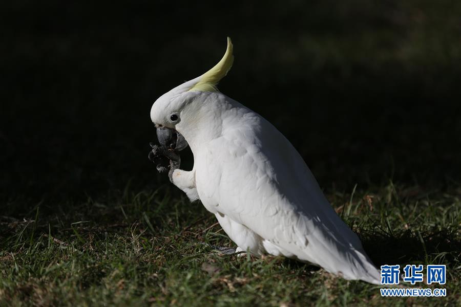 这是4月19日在澳大利亚悉尼皇家植物园拍摄的一只葵花凤头鹦鹉。新华社记者白雪飞摄