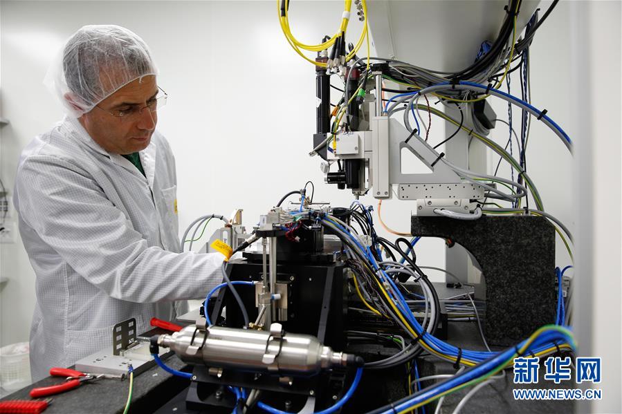 4月17日,在位于以色列北部城市约克尼穆的迈络思公司,一名技术人员在无尘室内工作。2019年3月,美国芯片制造商英伟达以69亿美元的价格收购以色列芯片企业迈络思。新华社发(吉尔·科恩·马根 摄)