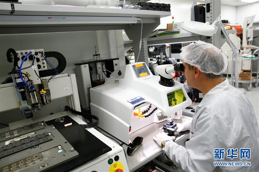 4月17日,在位于以色列北部城市约克尼穆的迈络思公司,一名技术人员在无尘室内工作。2019年3月,美国芯片制造商英伟达以69亿美元的价格收购以色列芯片企业迈络思。新华社发(吉尔·科恩·马根 摄)
